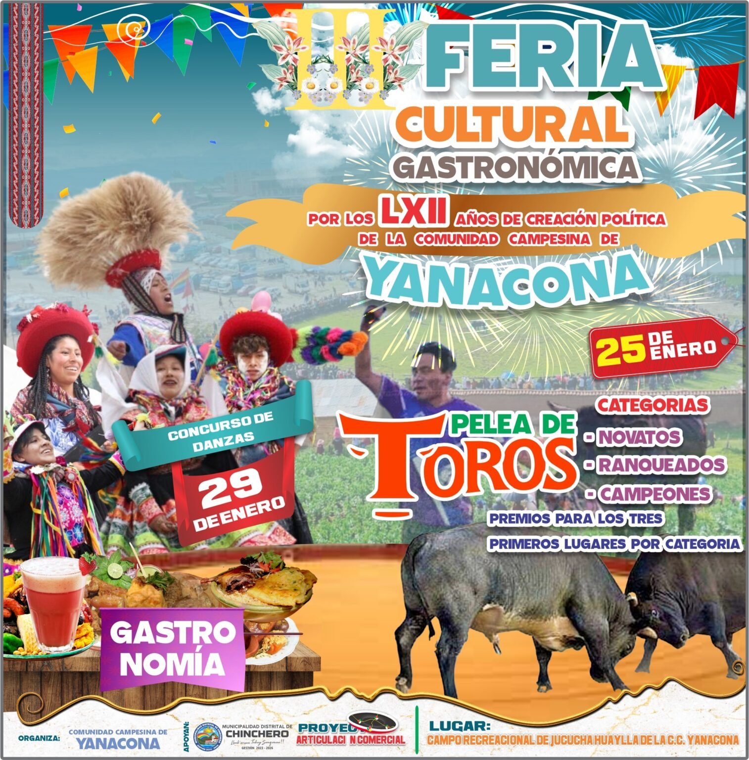 𝐗𝐗𝐈 𝐅𝐞𝐫𝐢𝐚 𝐑𝐞𝐠𝐢𝐨𝐧𝐚𝐥 𝐲 𝐗𝐗𝐗𝐈 𝐅𝐞𝐫𝐢𝐚 𝐀𝐠𝐫𝐨𝐩𝐞𝐜𝐮𝐚𝐫𝐢𝐚, 𝐀𝐠𝐫𝐨𝐢𝐧𝐝𝐮𝐬𝐭𝐫𝐢𝐚𝐥, 𝐀𝐫𝐭𝐞𝐬𝐚𝐧𝐚𝐥 𝐲 𝐂𝐮𝐥𝐭𝐮𝐫𝐚𝐥 𝐂𝐡𝐢𝐧𝐜𝐡𝐞𝐫𝐨 𝟐𝟎𝟐𝟓. Invitamos a la población local, provincia de Urubamba y región del Cusco a participar de nuestra Feria Regional Chinchero 2025, del 25 al 27 de julio en el Campo Ferial de Piuraypampa. Lo mejor de nuestra producción